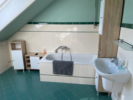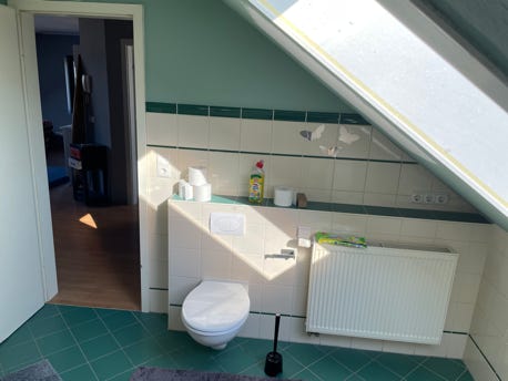 Tür links zum Bad, Tür hinten rechts zum „Arbeitszimmer“